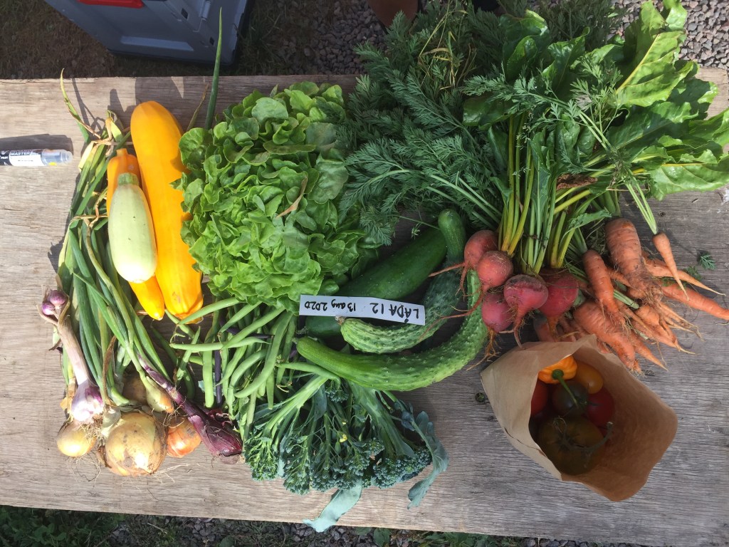 odlas en mångfald av grönsaker som packas i lådor och levereras till medlemmarna i vårt andelsjordbruk.