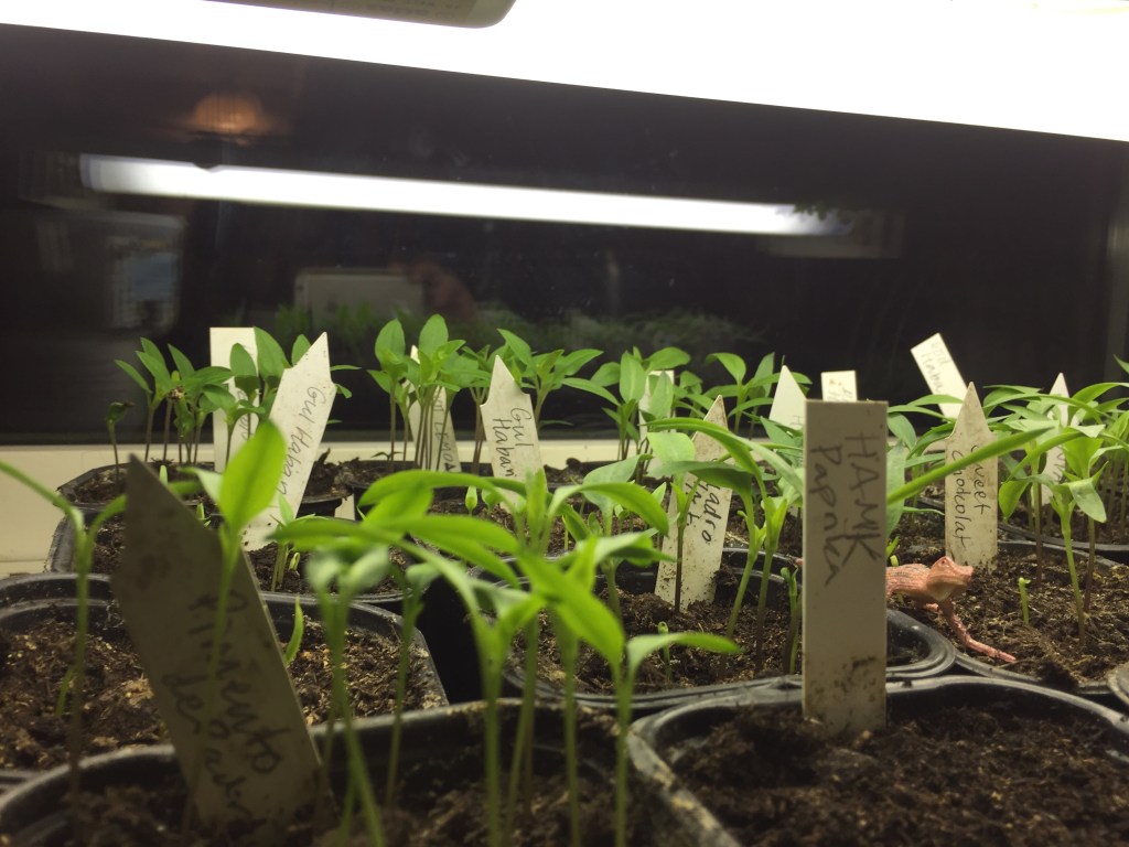 För nästan en månad sedan sådde vi morötter, rödbeta, vitlök (den satt vi i december) osv i växthuset. Detta ska ge en tidig skörd så vi kommer igång tidigt. I detta växthus ska vi sen plantera gurkorna. Dessa finns hittils bara som frö och ska sås nån gång i april. Tomaterna har dock kommit igång likaså chili, som vi förodlar sedan januari.