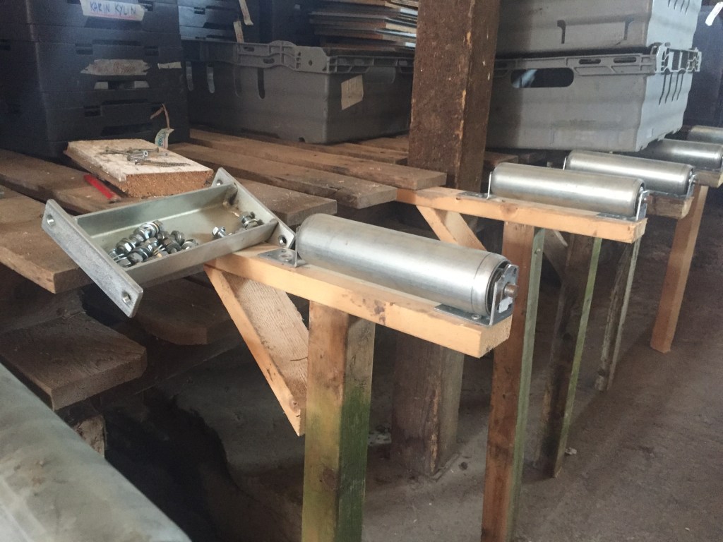 Denna år satsar vi på mekanisering i själva odling och optimering i packrummet. Packningen är en stor flaskhals i vår verksamhet och bära backar i krångliga läge kan vara ett tungt arbete. I år ska vi prova med att rulla backarna istället för att bära dom.