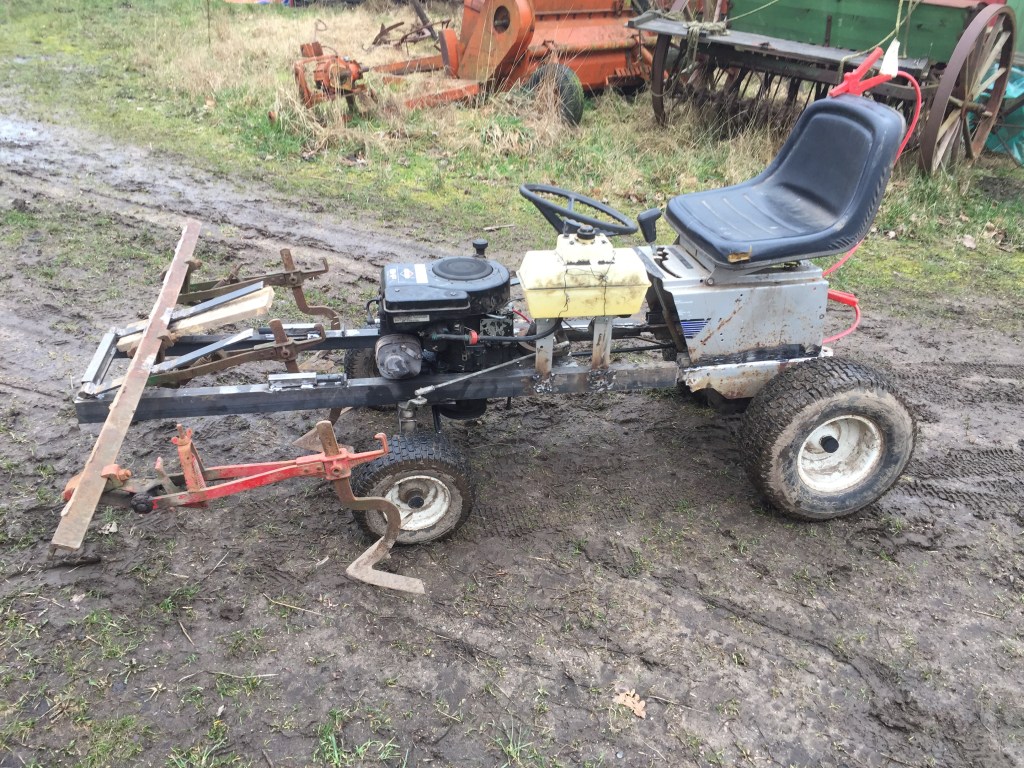 En annan sak som tar mycket kraft och tid är ogräsrensning. Vi odlar på ett relativt sätt liten yta: för lite för vanliga maskiner men för stor för att göra allt från hand. Hittills har vi dock faktiskt gjort allt ogräsrensning från hand och blivit mycket trötta och inte hunnit med helt. Men nu är det förhoppningsvis slut med detta. Efter många olika el-motors försök ska vi (tyvärr) köra på ett vanligare, bensinmotor. Vi har byggt om en trädgårdstraktor till en redskapsbärare. Egentligen är detta dock bara träningen. Förrförra veckan köpte vi förhållandevis dyra maskiner: ett helt hydraulsystem samt ny 5 hästkraftsmotor för att bygga en ännu finare och bättre maskin.