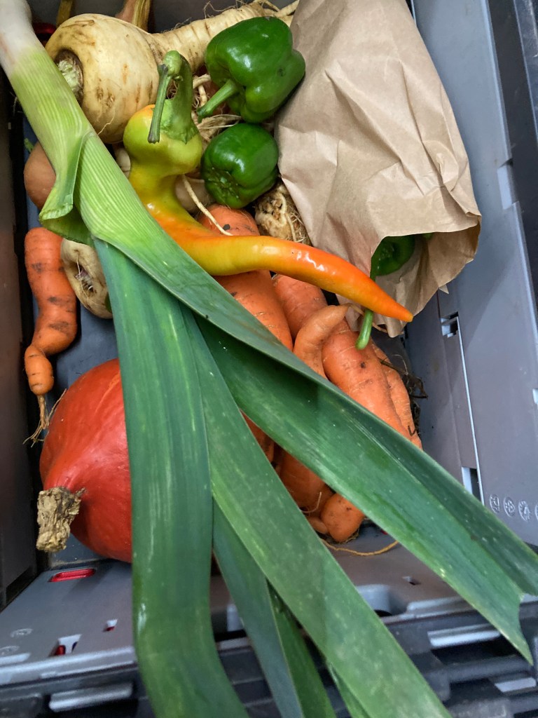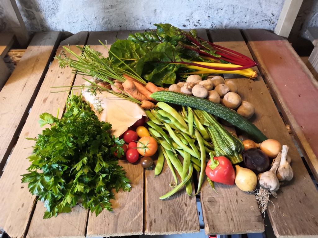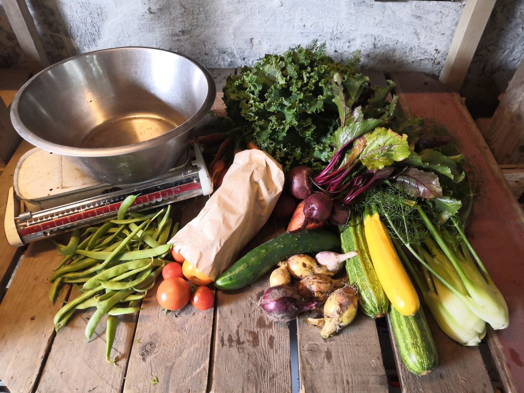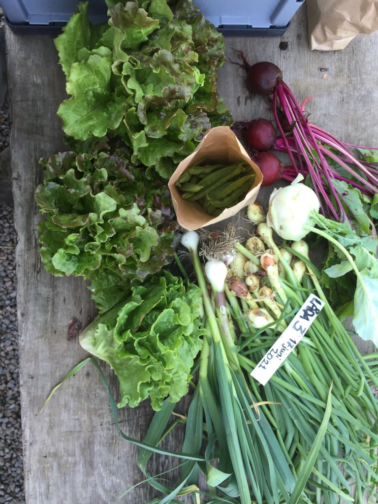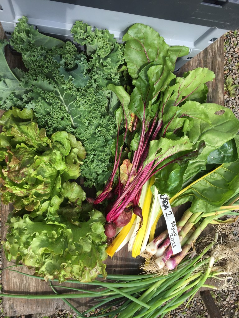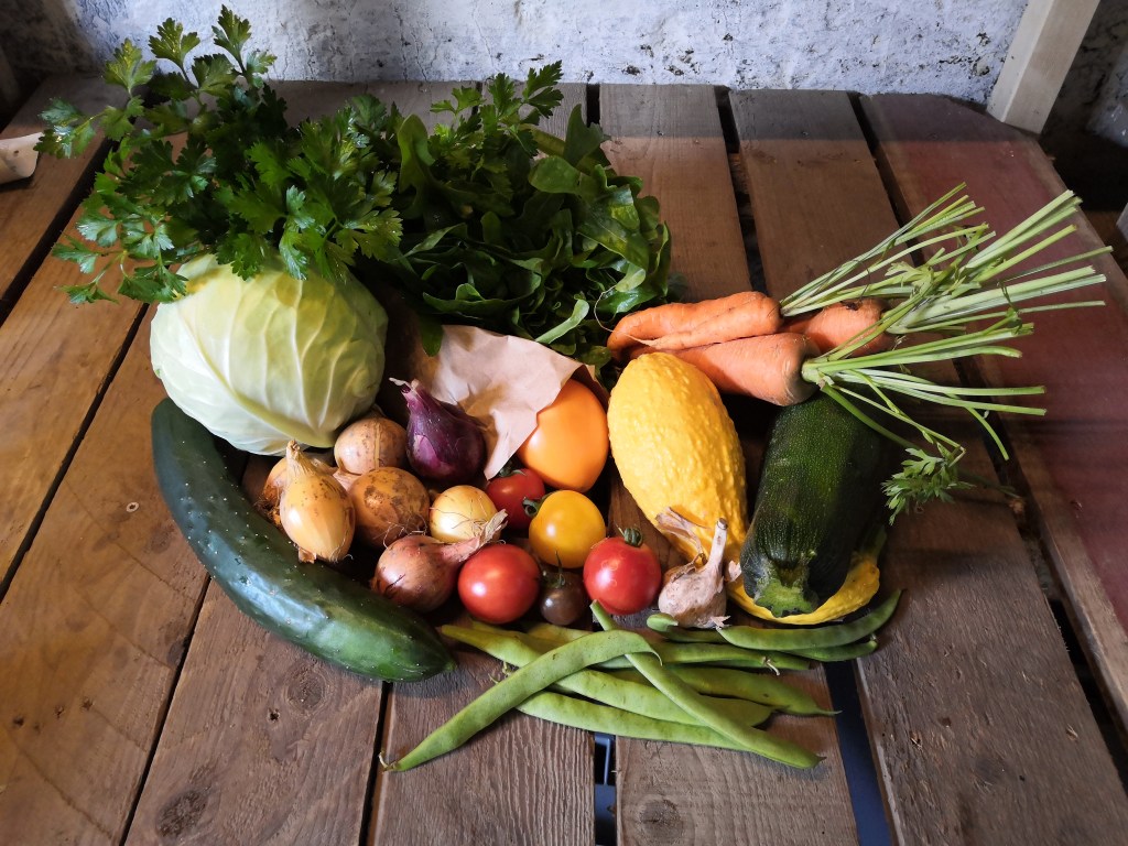 En andel av vår grönsaksskörd 2025 innebär runt 25 lådor med nyskördade och ekologiska grönsaker från gården. Grönsakerna levereras en gång i veckan från juni till november. Ni anmäler er till hela säsongen och men har möjlighet att skjuta upp tre lådor till senare och få dessa som ”dubbelleveranser” under leveranssäsongen.