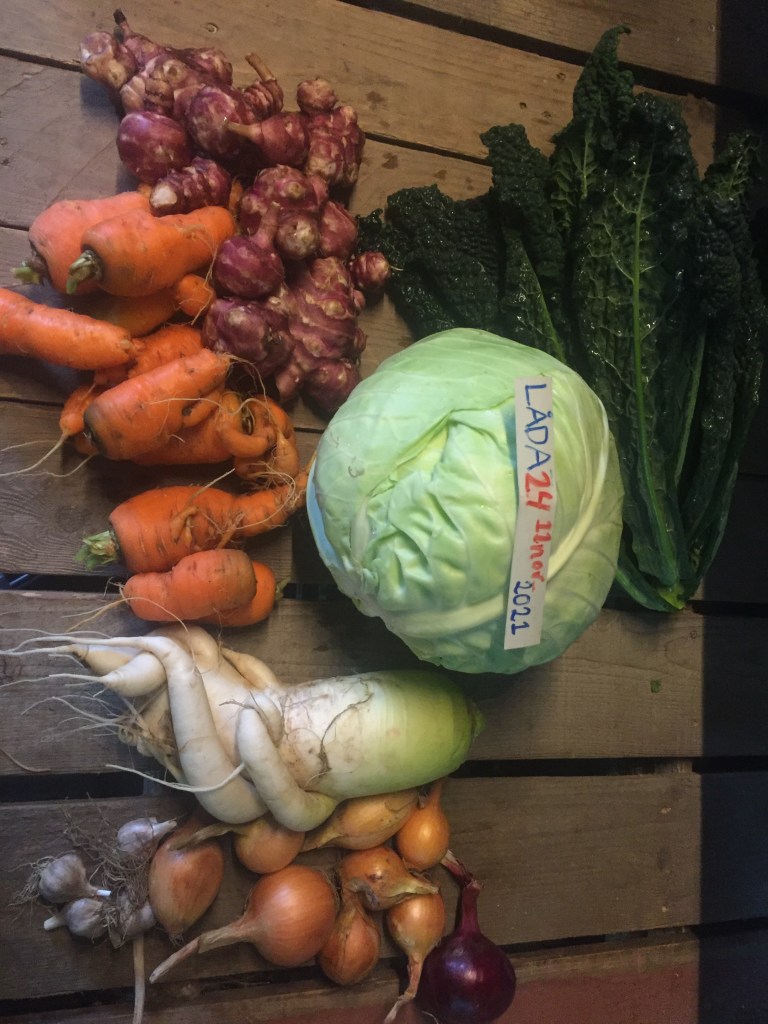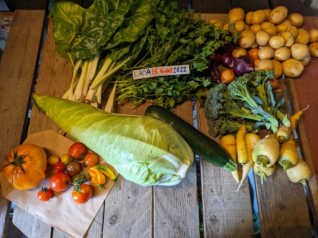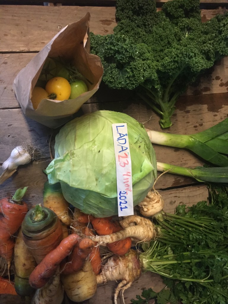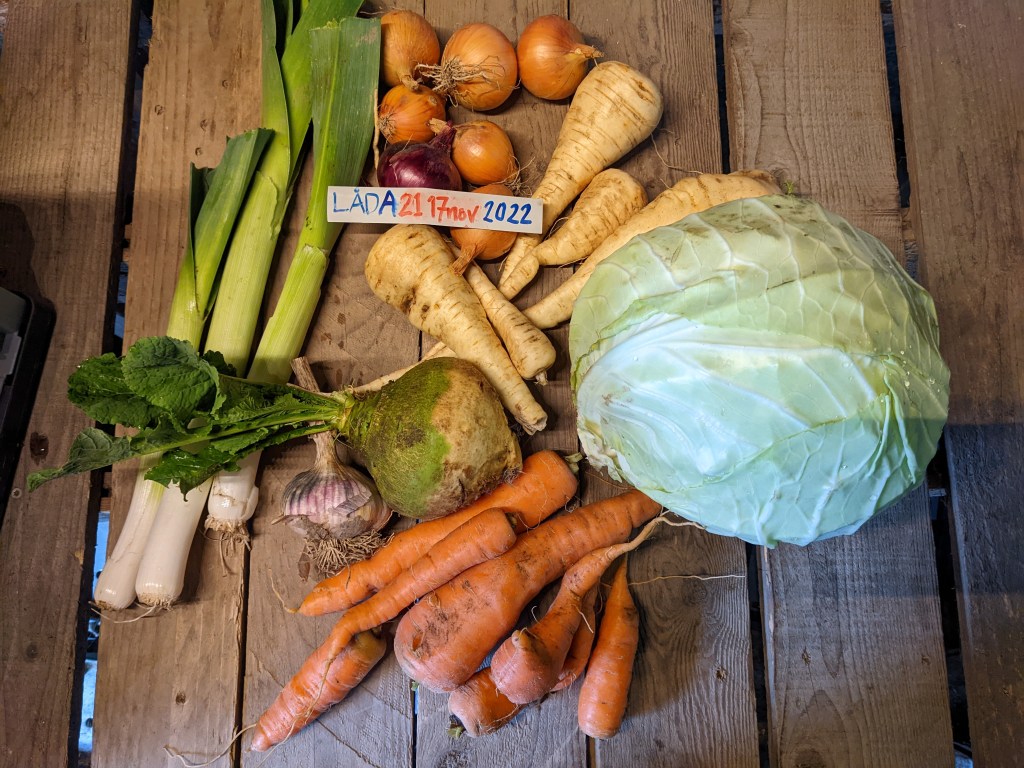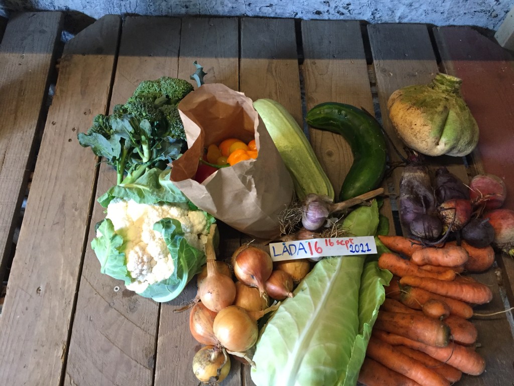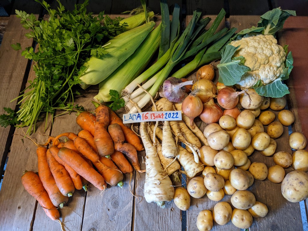 Längst ned på sidan finns bilder på tidigare leveranser, så ni kan få en uppfattning om hur mycket grönsaker en låda innehåller. Vi planerar odlingen för att kunna ge grönsakslådor i 25 veckor, men beroende på väder och andra faktorer kan leveranssäsongen vissa år bli några veckor kortare.