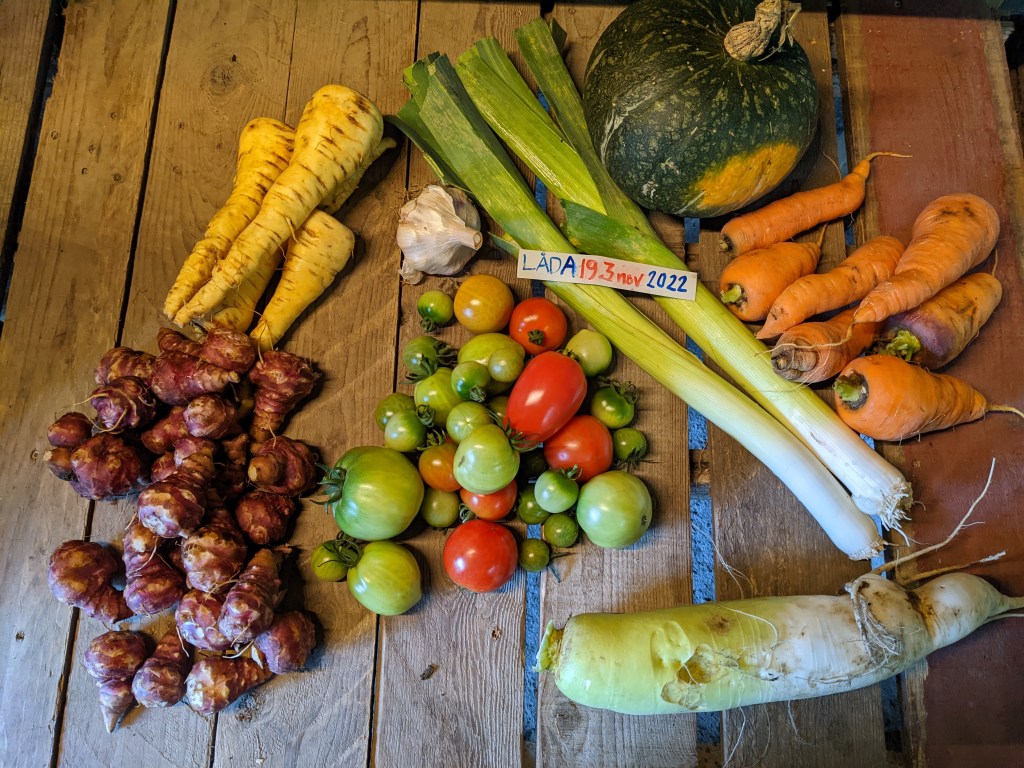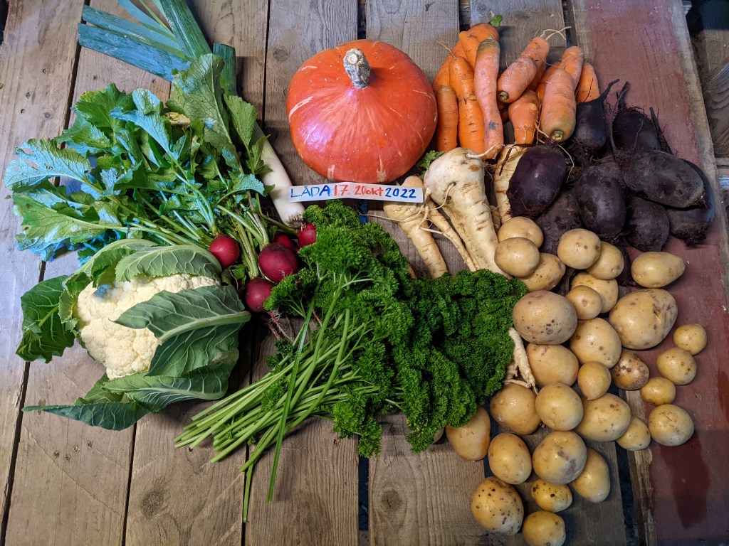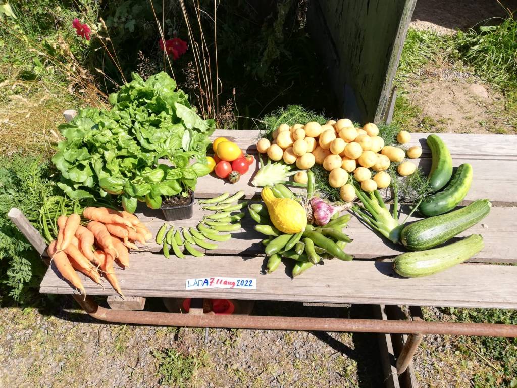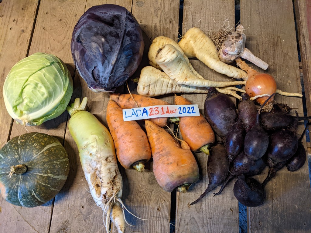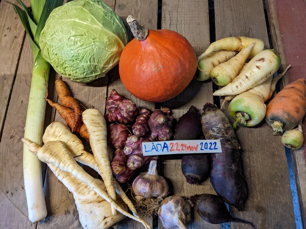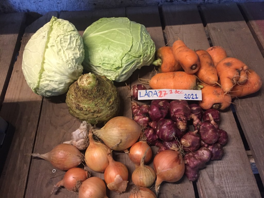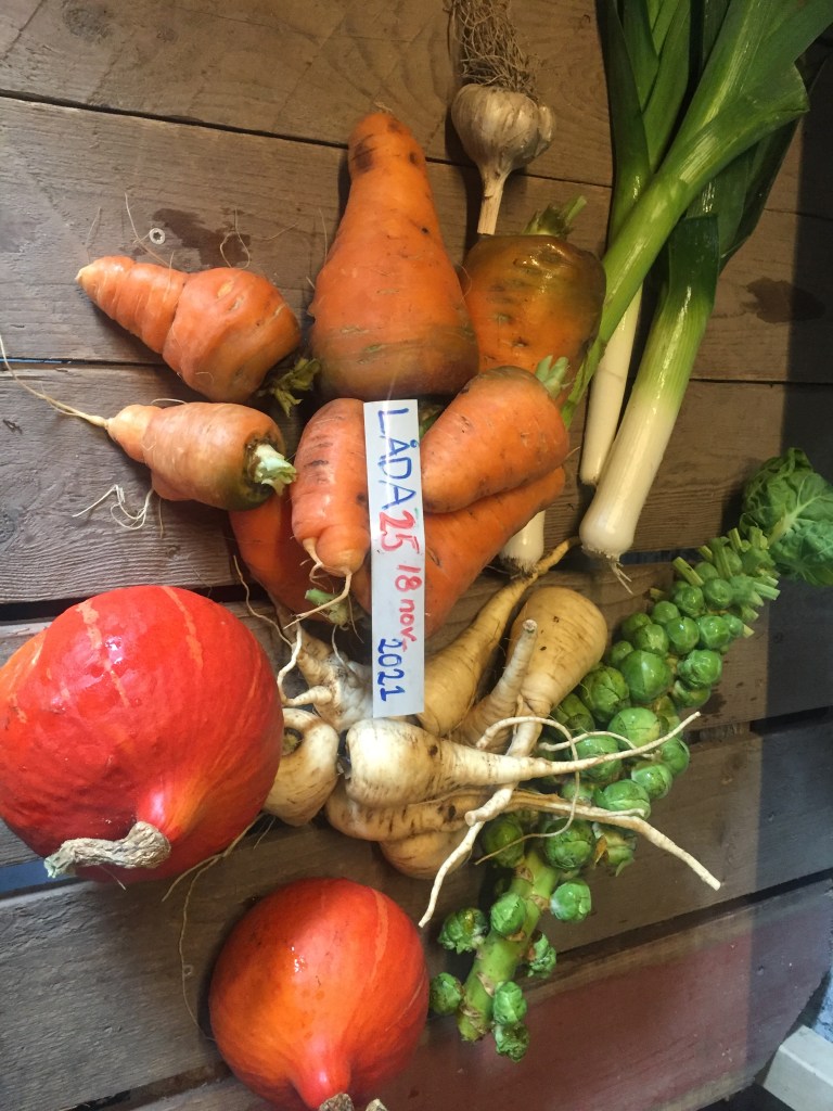 Längst ned på sidan finns bilder på tidigare leveranser, så ni kan få en uppfattning om hur mycket grönsaker en låda innehåller. Vi planerar odlingen för att kunna ge grönsakslådor i 25 veckor, men beroende på väder och andra faktorer kan leveranssäsongen vissa år bli några veckor kortare.
