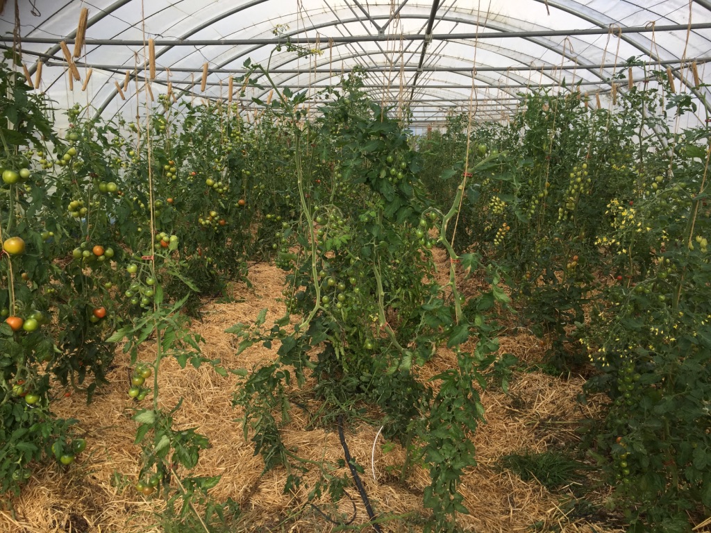 På gården finns även tre tunnelväxthus (9 x 30, 9 x 12 samt 6 x 30 meter). I det stora har vi tidiga grönsaker på våren och sen tomat och i det smalare har vi tidiga grönsaker på våren och sedan gurka. I växthuset som är 9 x 12 m har vi en bubbelplastkammare med bord som har undervärme där vi startar med de tidigaste sådderna på våren.
